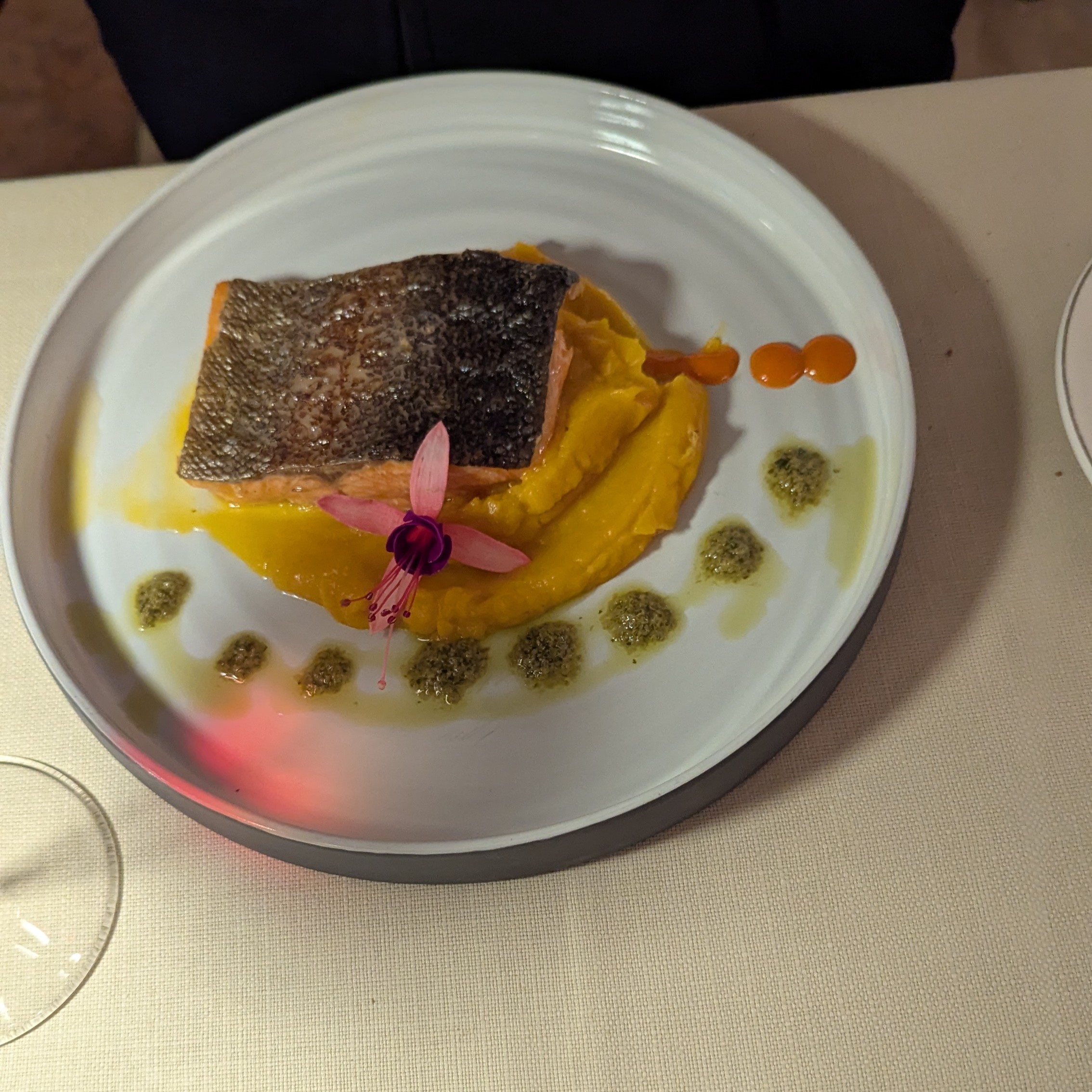 This is the restaurant in the Hotel Sirmione. The food is exceptional and the service is warm and gracious. We enjoyed pasta al gricia, peppery and creamy with guanciale and a tasty fish with sweet potato puree and pesto. The dessert was a work of art with tart berries and creamy lemon cake. We enjoyed our first bottle of Veronese Valpolicella Ripasso. The wine list was extensive and we appreciated the advice from our waiter about a good local wine.