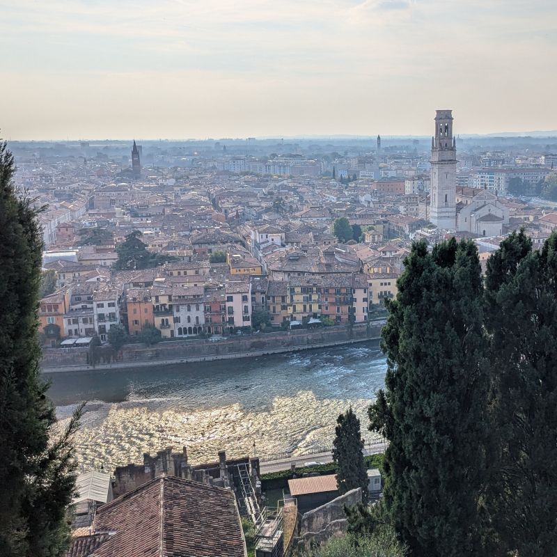 Heading up the hilltop area around Castel San Pietro, above Verona, is one of the best ways to truly appreciate the city. From this elevated viewpoint, the rooftops, bridges, and winding Adige River unfold below you, offering sweeping panoramic views you simply can’t get from street level. Whether you walk up or take the funicular, the climb is rewarded with a quieter, more relaxed atmosphere that feels worlds away from the busy historic center. It’s a perfect spot for photos, a peaceful stroll, or enjoying a drink as the city lights begin to glow at sunset.