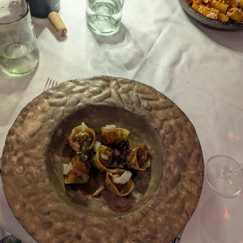 We went to this restaurant twice during our visit because it was so good. This stands up as one of my best meals in Italy. The service is kind and attentive, offering us recommendations of the traditional local wine called Cesanese del Piglio. We enjoyed first course of cappellaci stuffed with braised beef with a butter sage sauce. The secondi was a fall-off-the-bone pork dish with roasted potatoes and a small salad. Dessert was just perfect – chocolate cake with a zabaglione and fresh berries. All in all, a lovely and delicious dinner is what made us want to return a second time!