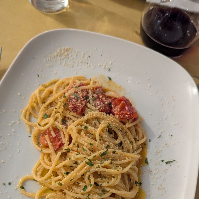 Another terrific ristorante in Verona is La Quercia. Recommended by the staff at my school, our dinner here was so tasty. We tried the spaghetti aglio olio with bright tasty cherry tomatoes and the cottoletto with roasted potatoes. We also enjoyed the polenta with tartufo appetizer and a delicious apple cake for dessert. We enjoyed the meal and were thankful for the wonderful staff at this quaint spot.