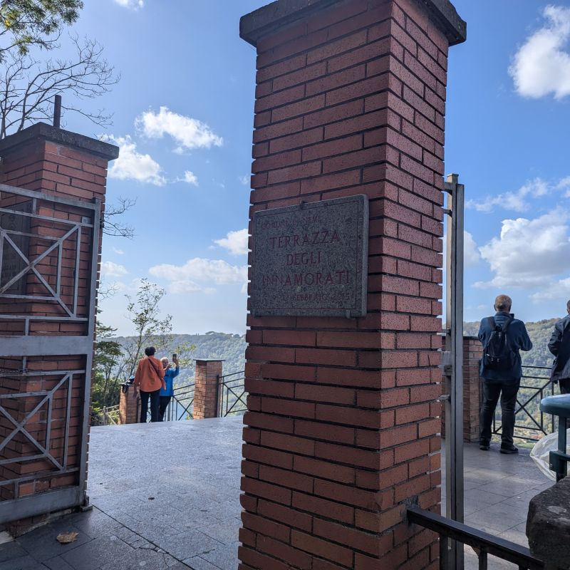 The Terrazza degli Innamorati—literally, the Lovers’ Terrace—is one of Nemi’s most romantic viewpoints, and it fully lives up to its name. Set along the edge of the village, the terrace opens onto sweeping views of Lake Nemi below, its dark waters reflecting the surrounding forested crater walls. Benches invite you to pause, take in the scenery, and enjoy the stillness that defines this hill town. Whether visited at midday or as the light softens toward evening, the terrace captures Nemi at its most poetic—a quiet moment suspended between sky, water, and legend.