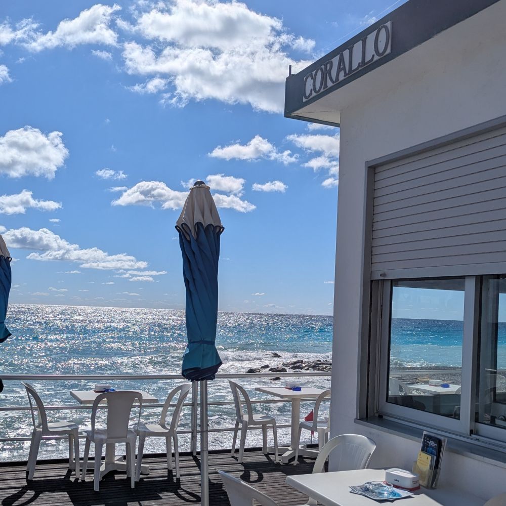 This great stop along the promenade is easily accessible from the train station. Stop here for a bit of seaside sun and a lovely aperitivo. The view of the water is unbelievable as in the right light, you can see the different depths by how the blue of the water color changes. The staff here are very nice and offered us information about Bordighera and what to see in town.